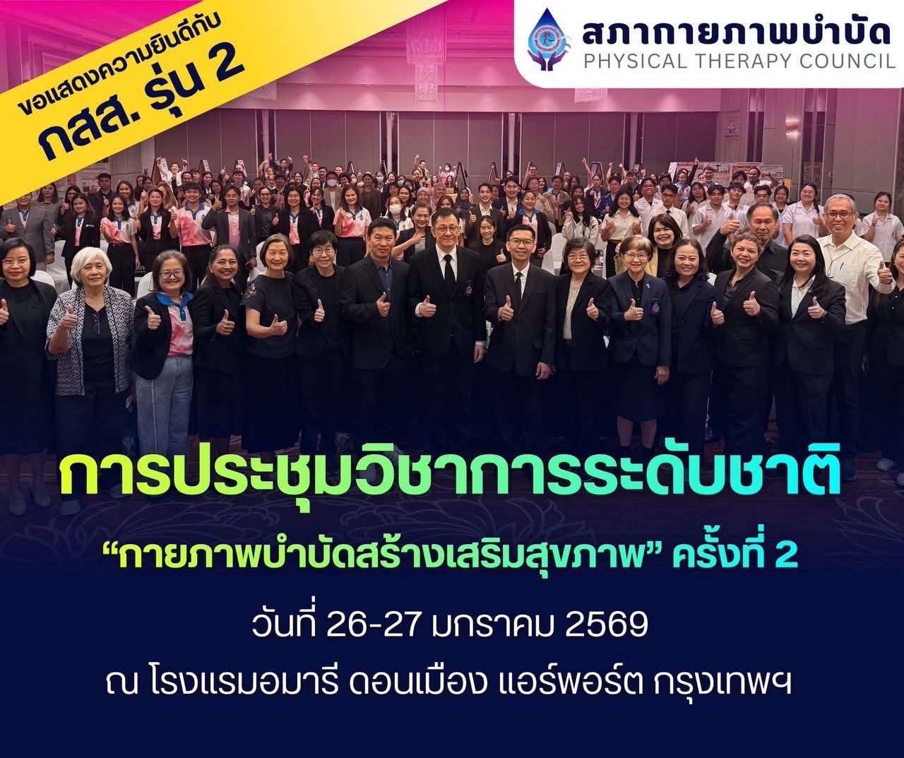 ขอเชิญเข้าร่วม โครงการประชุมวิชาการประจำปี กายภาพบำบัดกับการฝึกการเคลื่อนไหวและการเดินในผู้ป่วยโรคหลอดเลือดสมอง (Physical Therapy on Mobility and Gait Training among Patients with Stroke) วันที่ 25–27 พฤษภาคม 2569